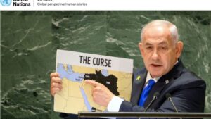 Nel settembre 2024, durante un intervento alle Nazioni Unite, il premier israeliano Benjamin Netanyahu ha mostrato alla platea due cartelli geografici: uno raffigurava, secondo lui, “il bene”, l’altro “il male”.